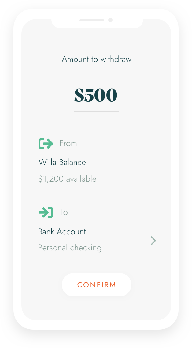 Your funds are immediately available in your Willa account and can be transferred to your bank account or PayPal. A debit card is coming soon.