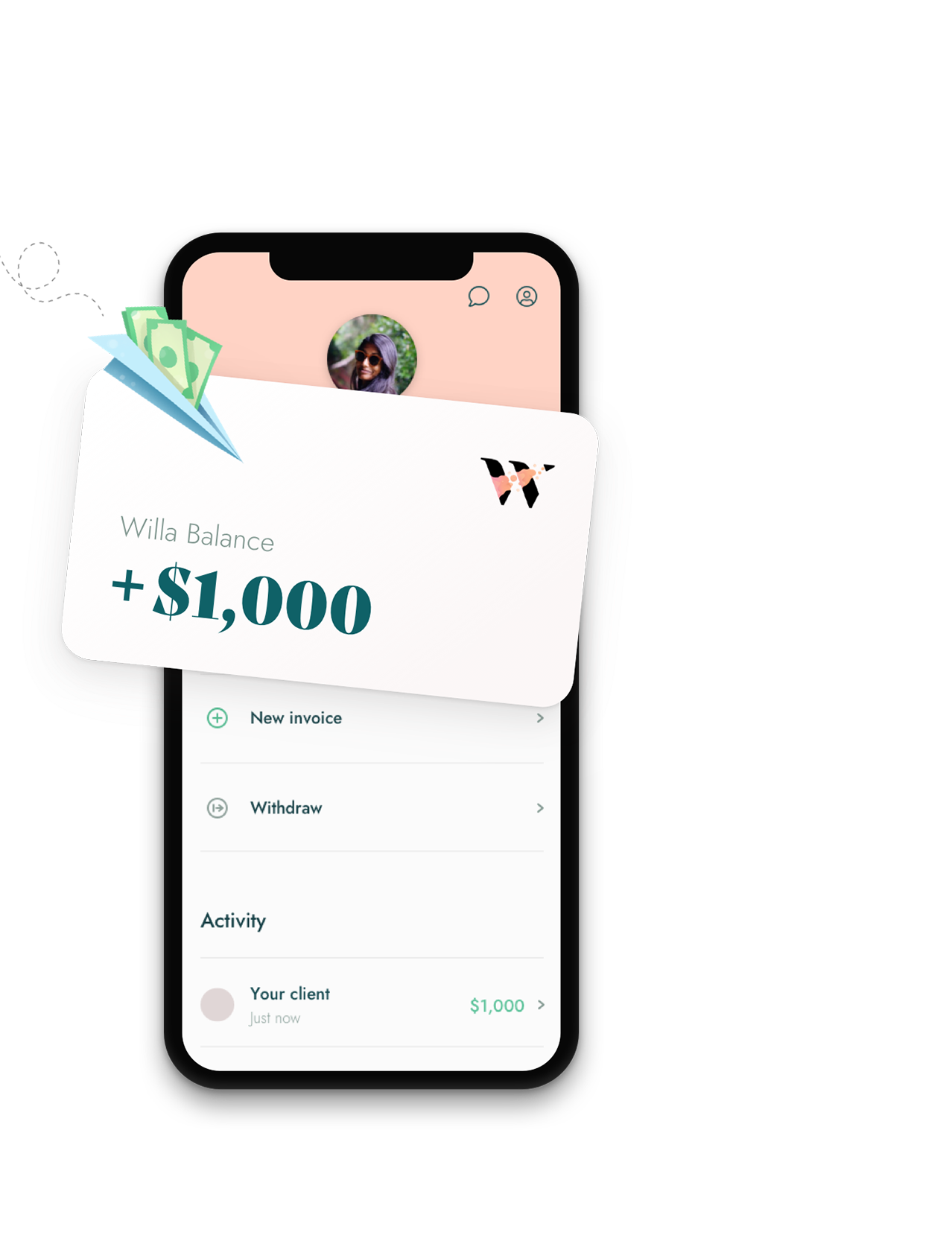 Use Willa to request payments from agencies and brands in seconds– with instant access to your money. Every client, every time.